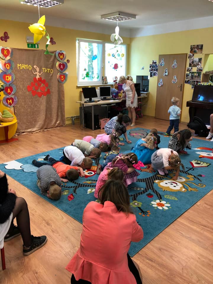 "Dziś w Przedszkolu wielkie święto ! Mama z buzią uśmiechniętą, Tata też zadowolony śle uśmiechy w wszystkie strony 😊 hej rodzina dziś w Przedszkolu zabawę zaczyna , każdy synek, każda córka ma bukiet życzeń i uśmiech - najpiękniejsza laurka !” Dzień Rodziny w naszym Przedszkolu rozpoczął się występem dzieci dla rodziców w klimacie cza cza i disco polo a zakończył zumbą i wspólną makareną, były prezenty, konkursy dla tatusiów i mam a także słodka niespodzianka 😊
