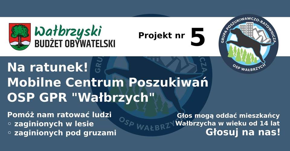 Zachęcamy do głosowania na Grupę poszukiwawczo - ratowniczą OSP Wałbrzych. Jesteśmy przekonani, że pracują tam ludzie o wspaniałych sercach, zawsze pełni wiary i nadziei w pozytywne zakończenie każdego zadania. Korzystaliśmy z Waszej pomocy za co z całego serca dziękujemy.