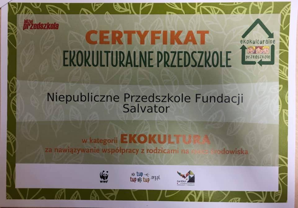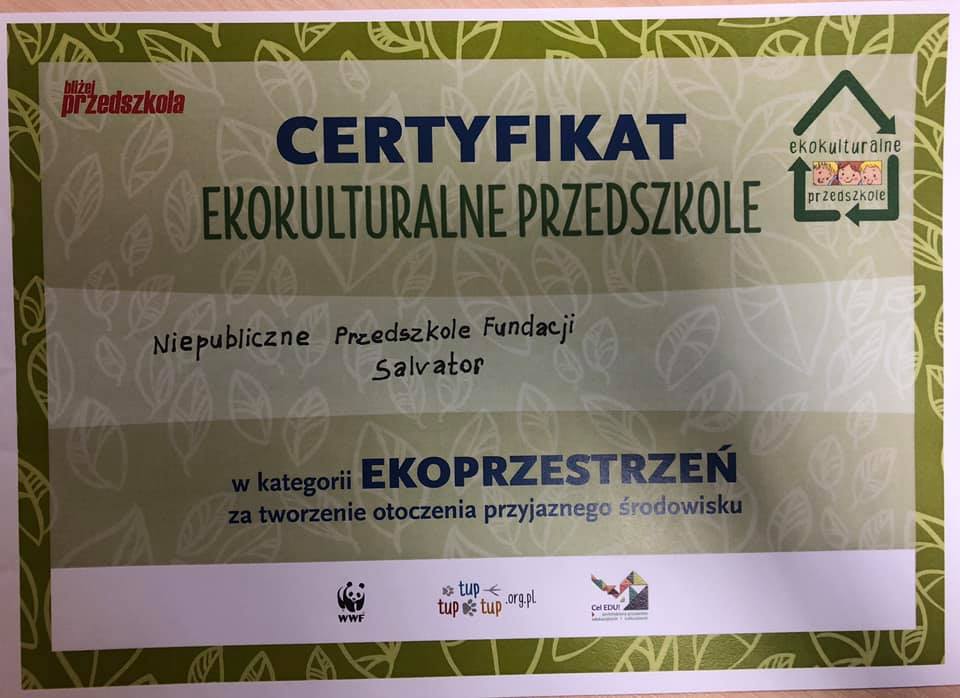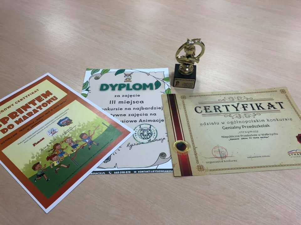 3.Miesięcznik pedagogiczny "Bliżej Przedszkola" w Krakowie ( 3 certyfikaty z EKOPRZEDSZKOLA z zakresu plastyki, kultury i zagospodarowania przestrzeni oraz certyfikat z zakresu sprawności i kreatywności zajęć ruchowych w Przedszkolu ,,Sprintem do Maratonu '').