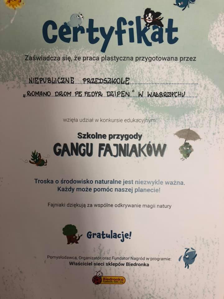 Prezentujemy osiągnięcia naszego Niepublicznego Przedszkola "Romano drom pe fedyr dzipen" z Wałbrzycha od września do grudnia 2020 r. na tle ogólnopolskim.