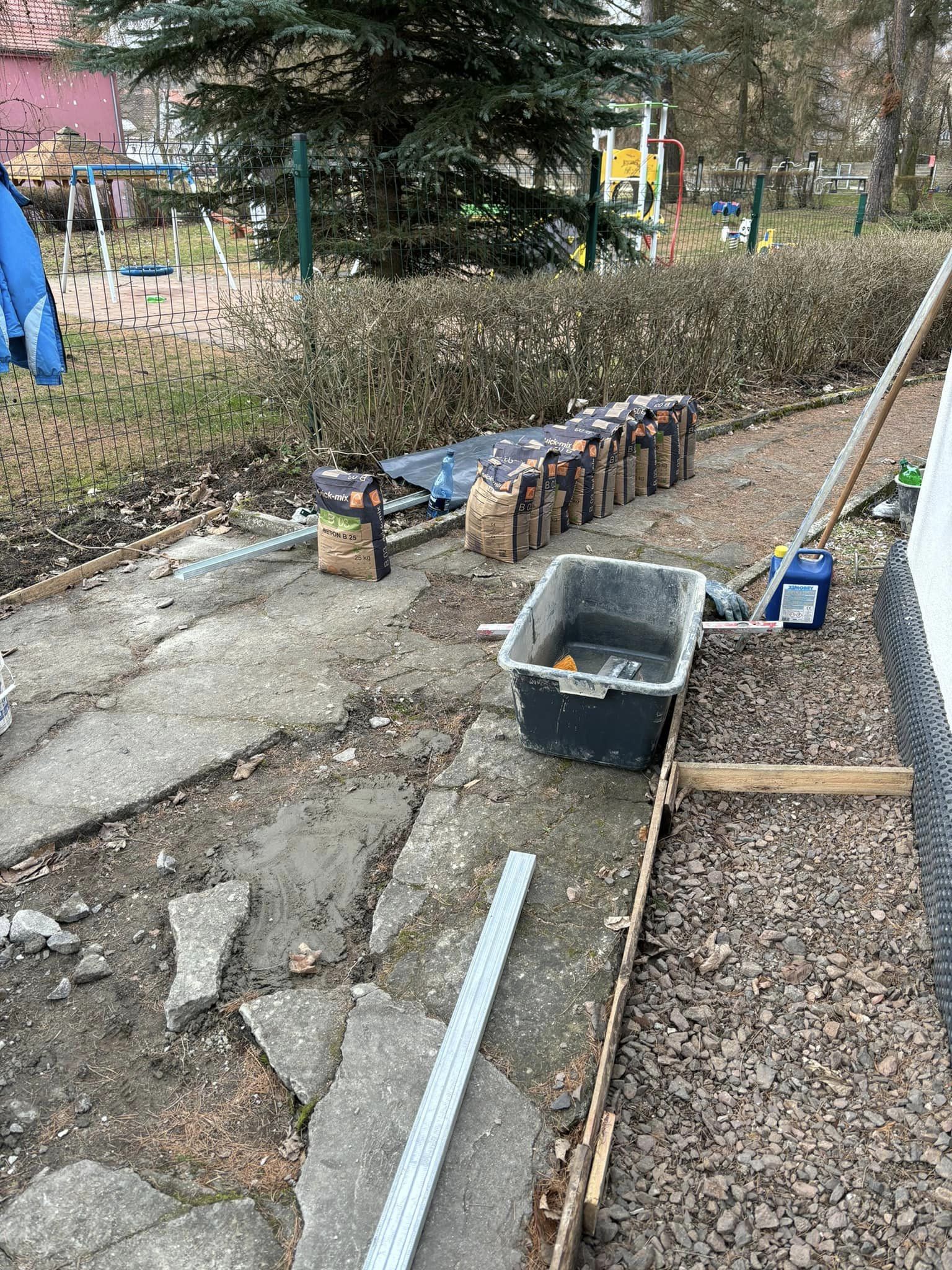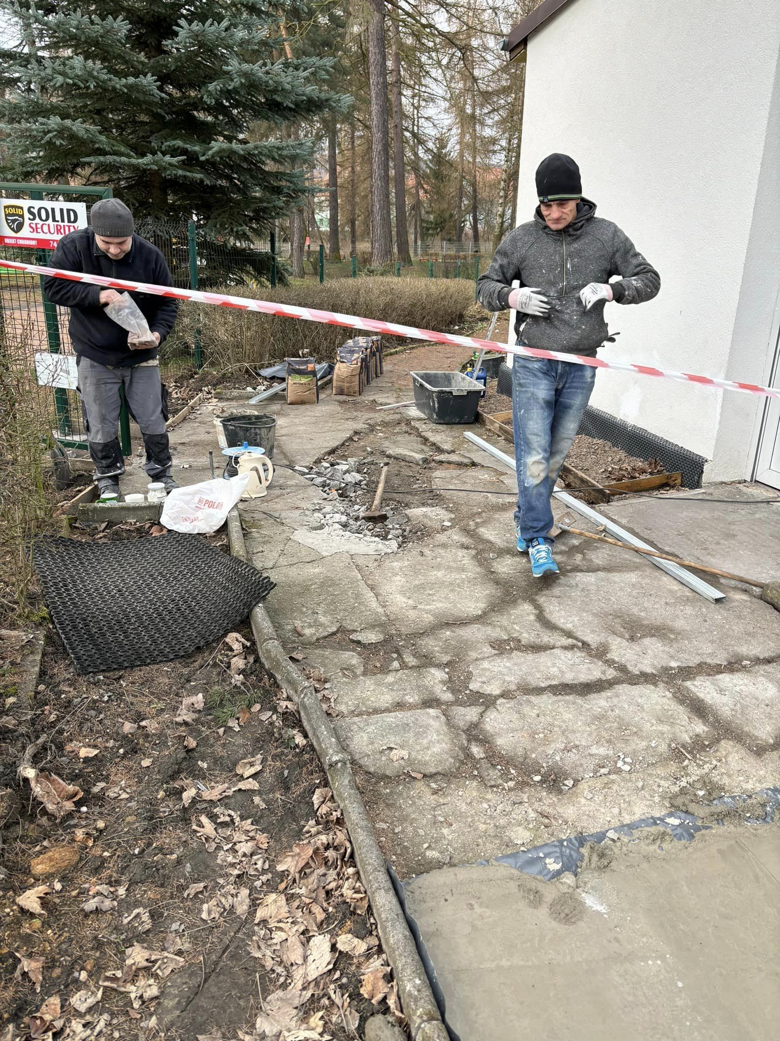Warunki pogodowe pozwoliły wznowić remont nawierzchni chodnikowej oraz naprawę części ogrodzenia należących do naszego Przedszkola.
