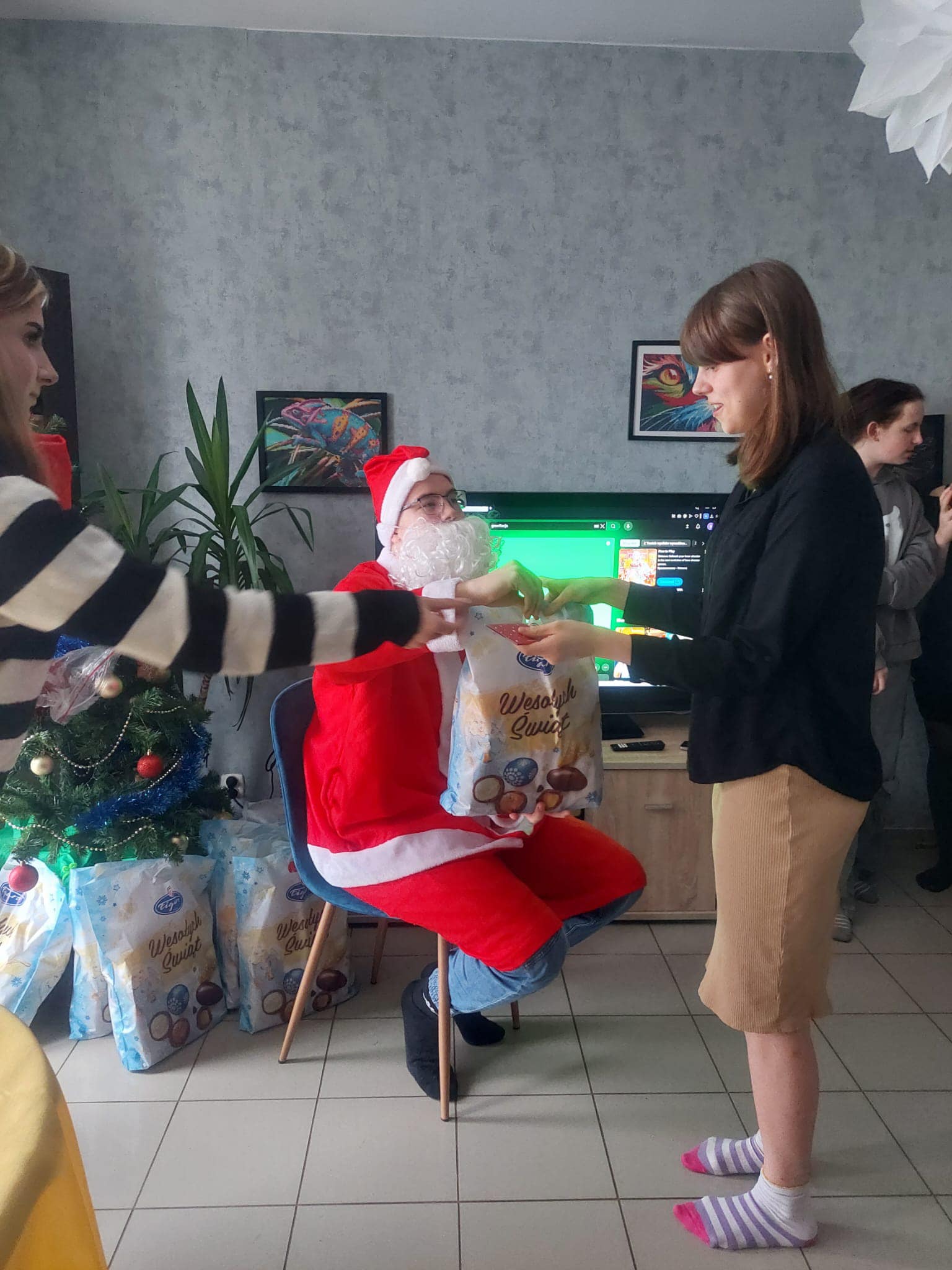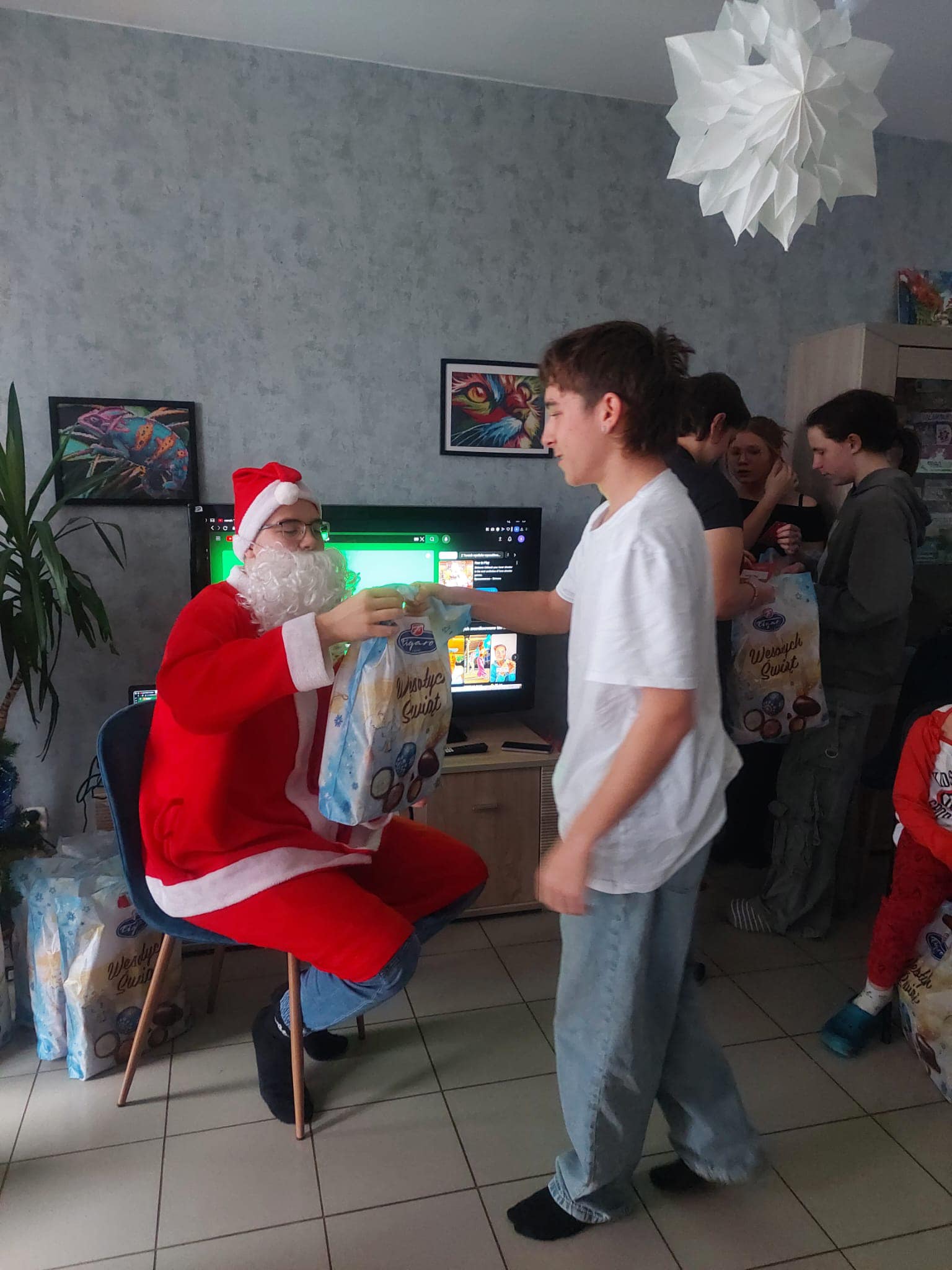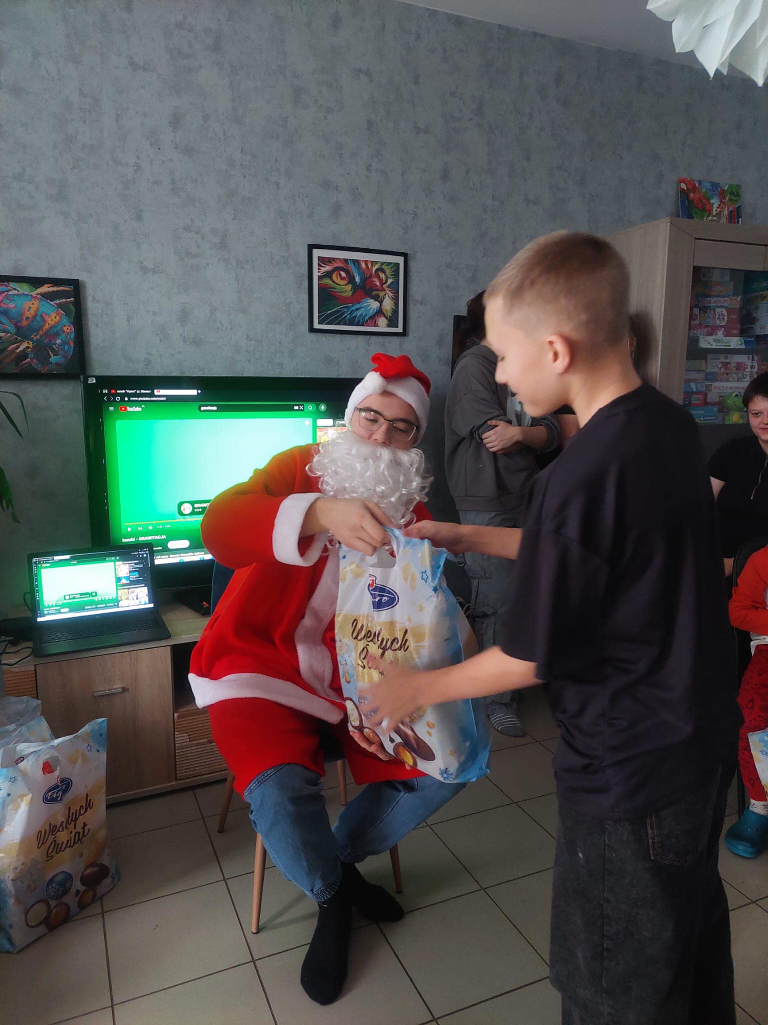 Była to już 34 akcja (!) gdy w dniu 11 grudnia nasze Domy dla Dzieci odwiedzili uczniowie wraz nauczycielkami p. Anna Czubala oraz p. Katarzyną Zator z Zespołu Szkół ze Strzegomia rozdając świąteczne prezenty od Mikołaja. W podziękowaniu nasza młodzież i dzieci zaprezentowały występy artystyczne: śpiew, wierszyki, zagadki.