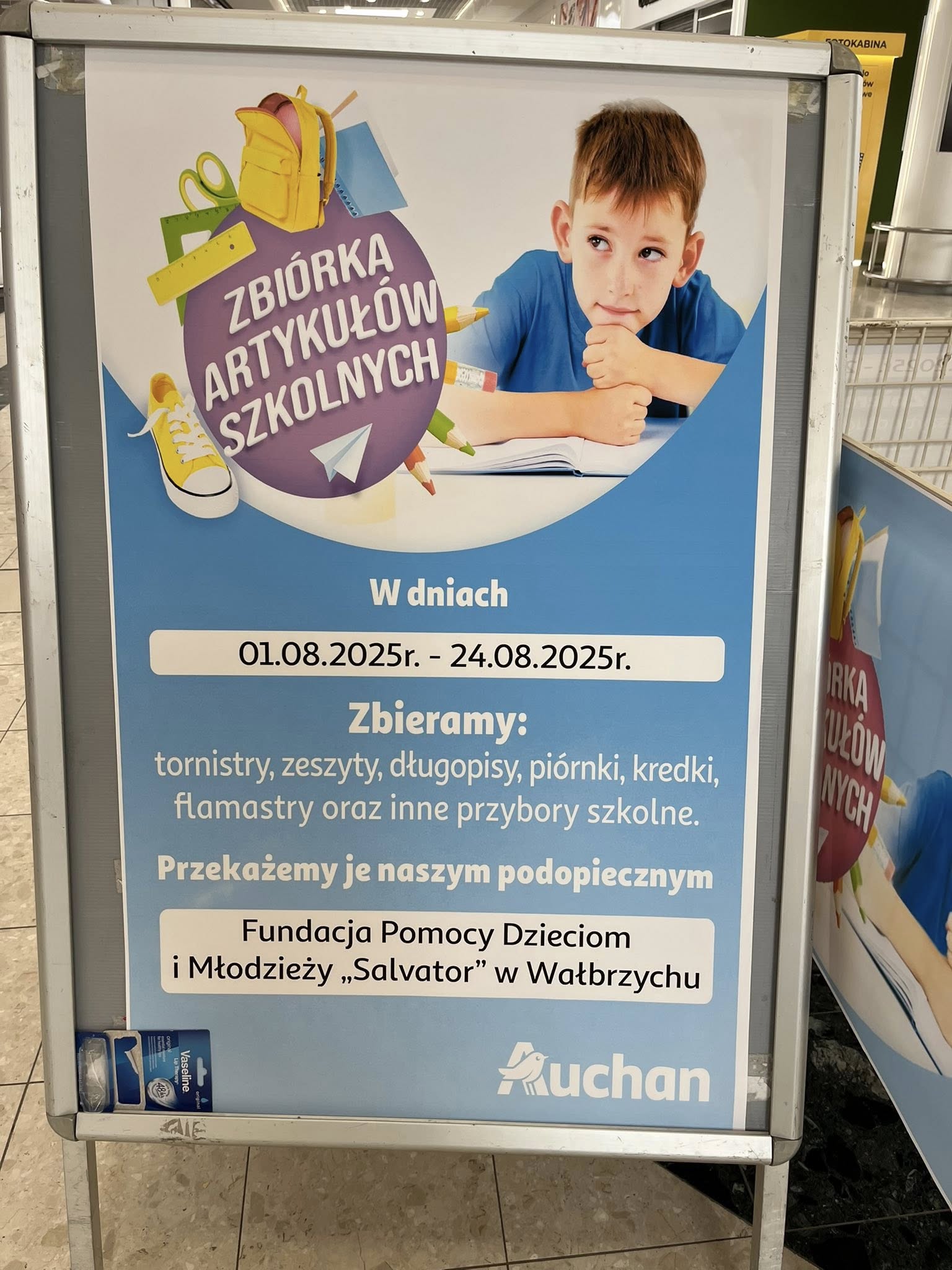 Drodzy Czytelnicy ! W wałbrzyskim Auchan trwa zbiórka artykułów szkolnych dla naszych dzieci z Domu Dziecka.