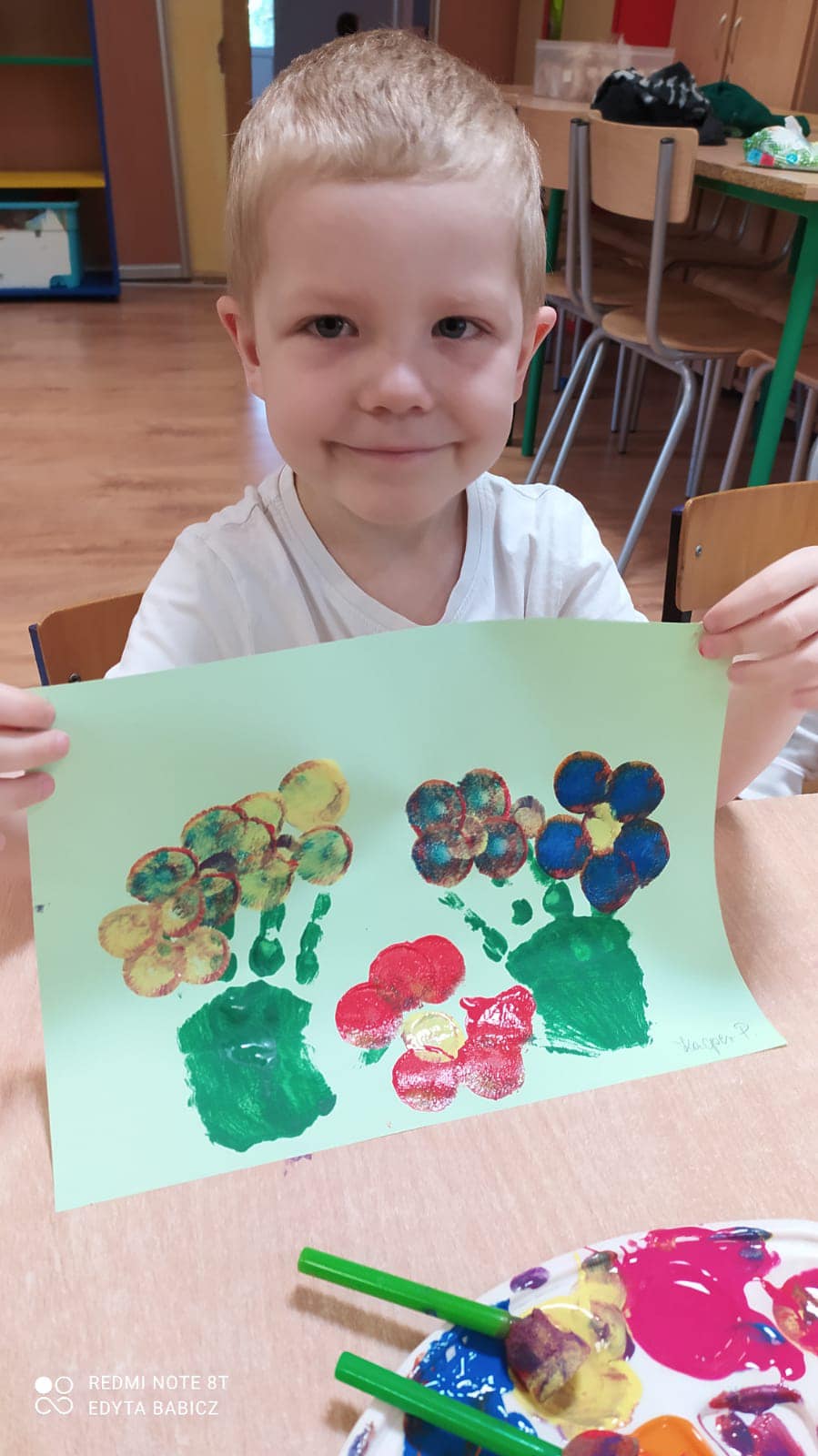 Dzisiaj dzieci z grupy "Malinki" i "Jagódki" w naszym Przedszkolu wykonały piękne prace plastyczne pt. "Moje letnie kwiaty", obejrzały film edukacyjny "Bezpieczne wakacje" oraz podzieliły się swoimi planami wakacyjnymi